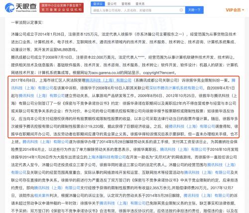 天眼查App显示,近日,深圳市腾讯计算机系统有限公司新增一则开庭公告信息,原告为上海沐瞳科技有限公司,案由为侵害计算机软件著作权纠纷,该案将于11月29日在上海知识产权法院开庭。变更记录显示,抖音旗下北京朝夕光年信息技术有限公司已于2021年5月全资持股上海沐瞳科技有限公司。据相关判决文书显示,沐瞳公司跟腾讯的纠纷由来已久。2017年,腾讯控告徐振华违反竞业协议,擅自在外设立沐瞳公司,且与腾讯存在直接竞争关系,沐瞳的《MLBB》与《Arena of Valor》(《王者荣耀》国际版)同属于在线战术竞技手游。案件最终判决徐振华赔付腾讯1940万元。2019年,沐瞳以不正当竞争为由将腾讯告上法庭。沐瞳诉称,腾讯编造和传播与事实不符的虚假信息,阻碍原告与相关合作商的合作,该行为给沐瞳的商业信誉造成了严重损失。法院一审认定腾讯构成商业诋毀,判决其赔偿赔偿沐瞳公司经济损失及合理费用共计22万元。腾讯提起上诉,二审法院判决维持原判。