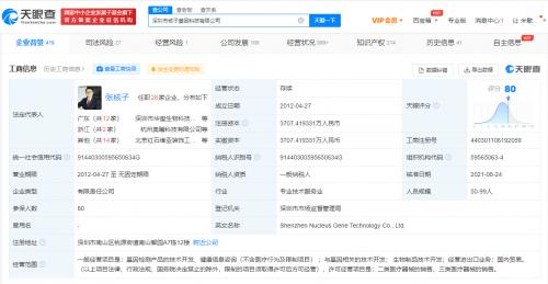 值得一提的是,2021年1月,济南华曦医学检验有限公司因“谎报隆尧县核酸检测结果”一事引起广泛关注。天眼查显示,该公司由深圳市核子基因科技有限公司间接全资持股。