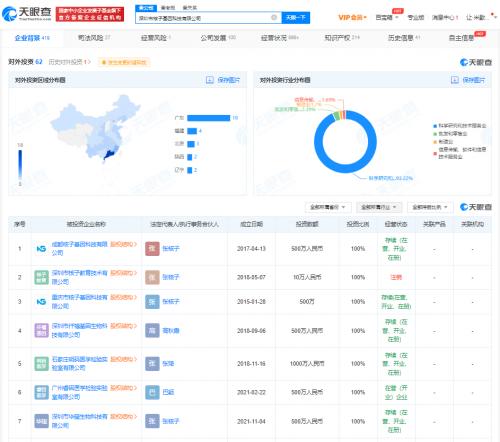 天眼查显示,深圳市核子基因科技有限公司成立于2012年4月,法定代表人为张核子,注册资本约3707万人民币,经营范围包括基因检测产品的技术开发;与基因相关的技术开发;生物制品技术开发等,由张核子、巴颖、深圳市红业实业合伙企业(有限合伙)等共同持股。其中,张核子持股比例约64.7%,为第一大股东和疑似实际控制人。该公司共对外投资62家企业,其中在业、存续状态的有55家,包括深圳市核子健康科技有限公司、长沙核子华曦医学检验有限公司、深圳市核子生物科技有限公司等,版图涉及基因科技、医学检验、网络技术等。值得一提的是,核子基因投资的公司中有16家成立于今年,其中8家公司成立于今年10月,覆盖青岛、厦门、珠海、大连、海口等多个城市,西宁核子则成立于今年11月。该公司在深圳共有7家分支机构,均已注销。