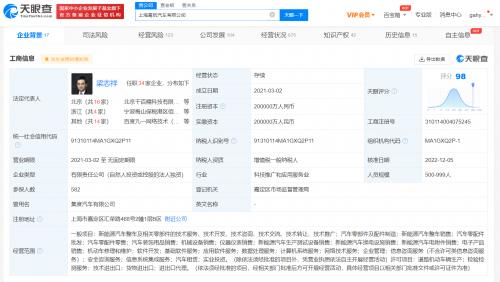天眼查App显示,近日,集度汽车有限公司发生工商变更,企业名称变更为上海幂航汽车有限公司。该公司成立于2021年3月,注册资本20亿人民币,法定代表人为梁志祥,由达孜县百瑞翔创业投资管理有限责任公司全资持股,李彦宏为疑似实际控制人。