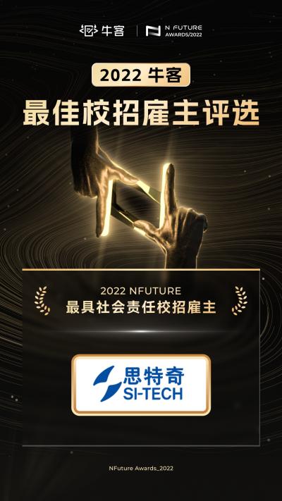 2022年12月2日,北京思特奇信息技术股份有限公司(以下简称:思特奇;股票代码:300608.SZ)凭借在企业社会责任方面作出的卓越成就,以实际行动推动青年人才就业发展,护航青年人才成长,在众多企业中脱颖而出,荣获“2022 NFuture最具社会责任校招雇主”奖!