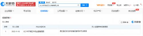 天眼查App显示,近日,长沙字节跳动文化传媒有限公司因通过登记的住所或者经营场所无法联系,被长沙市开福区市场监督管理局列入经营异常名录。该公司成立于2018年12月,法定代表人为李飞,注册资本1000万人民币,经营范围包括文化娱乐经纪;互联网广告服务;软件服务等,由北京字节新异科技有限公司全资持股,后者由抖音有限公司全资持股。