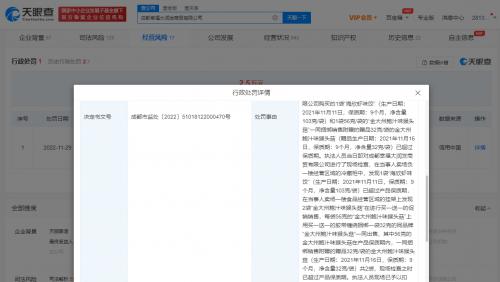 天眼查App显示,近日,成都幸福大润发商贸有限公司因经营超过保质期的食品,被都江堰市市场监督管理局罚款2.5万元。