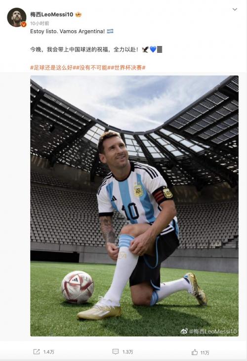 12月18日,梅西发布微博,表示“今晚,我会带上中国球迷的祝福,全力以赴!”(虎嗅网)