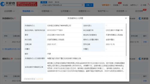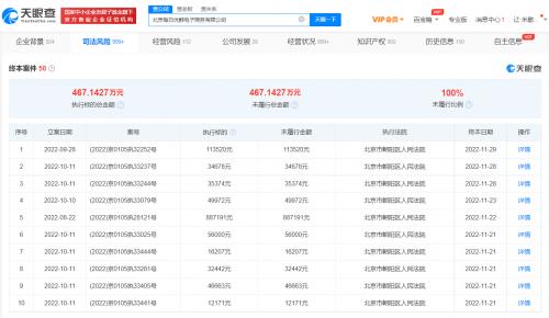 风险信息显示,北京每日优鲜电子商务有限公司存在多条被执行人、限制消费令以及终本案件信息,累计被执行超160万元,未履行总金额超467万元。