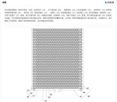 摘要显示,该动力电池包括:多排电芯、多个液冷板、进液组件以及出液组件,每排电芯的两侧均贴附有液冷板,液冷板具有进液口、出液口和连通进液口和出液口的内部通道;进液组件与每个进液口连通,用于向液冷板内输送冷却液;出液组件与每个出液口连通,用于接收由液冷板排出的冷却液。该实用新型实施例的动力电池通过在每一排电芯的两侧均设置液冷板,从而每一排电芯都能通过两个液冷板冷却,冷却面积大,极大提高了冷却效率,提高了电池的使用寿命、安全性能及快充性能。