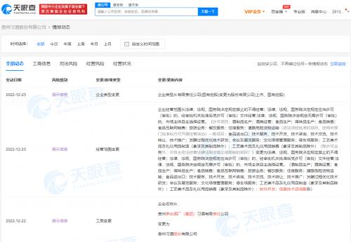 天眼查App显示,近日,贵州茅台酒厂(集团)习酒有限责任公司发生多项工商变更,名称变更为贵州习酒股份有限公司,企业类型从有限责任公司(国有控股)变更为股份有限公司(上市、国有控股),同时公司经营范围新增软件开发;信息技术咨询服务。