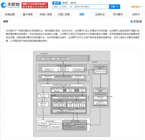 天眼查App显示,近日,华为技术有限公司申请的“跨设备的协同拍摄方法、相关装置及系统”专利公布。