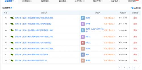 分支机构信息显示,菲诗小铺(上海)化妆品销售有限公司在国内共有38家分支机构,分布在十余个城市,目前均已注销。