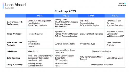 在本次峰会上,Apache Doris PMC陈明雨还代表社区首次发布了全新定位,并公布了社区2023年的研发计划。