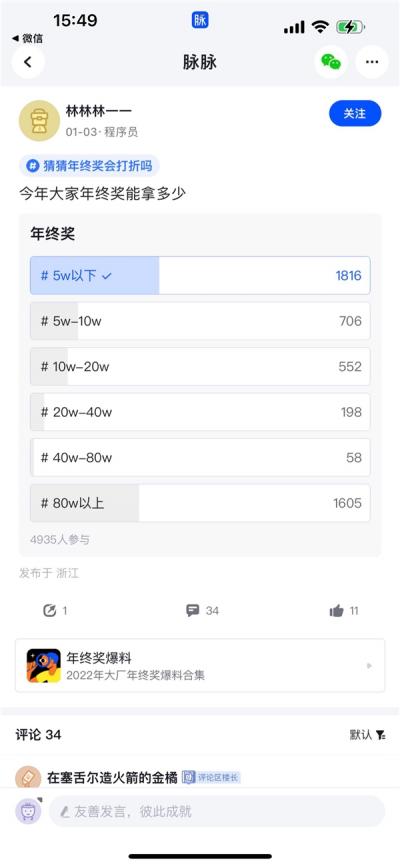 不过也有脉友表示有企业待遇优厚,外包都很几个月的年终。还有公司更是在年前就会发年终奖让大家好过年,引发大家的热议围观。