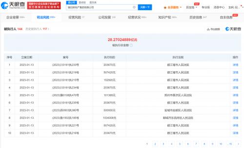 目前,融创房地产集团有限公司存在多个被执行人信息,被执行总金额超28亿元,此外还存在多个失信被执行人、限制消费令及终本案件信息,未履行总金额超1760万元。
