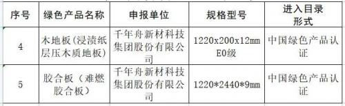 近日,千年舟集团难燃胶合板、木地板、轻钢龙骨、纸面石膏板等产品通过机构层层严格认证检测,成功入选《佛山市绿色建材目录》。