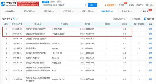 天眼查App显示,近日,小红书关联公司行吟信息科技(上海)有限公司的“小红书内部社区PC端软件”及“小红圈运营管理后台软件”著作权获得登记批准,两个软件简称分别为“小红圈PC端”、“小红圈管理后台”,当前版本号均为V1.0。