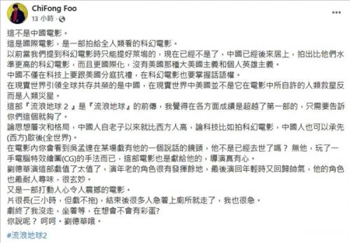 还有海外网友毫不吝啬给出的好评,“比预想的好太多,被冲击到了,完全不输好莱坞水准”、“流浪地球讲的是人类文明的延续,数字生命之争,电影立意高大上,完全不比星际穿越差”。