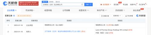 天眼查App显示,近日,北海牧场(北京)乳品有限公司发生工商变更,全资股东元气森林(北京)食品科技集团有限公司退出,新增股东Land of Promise Group Holdings HK Limited。