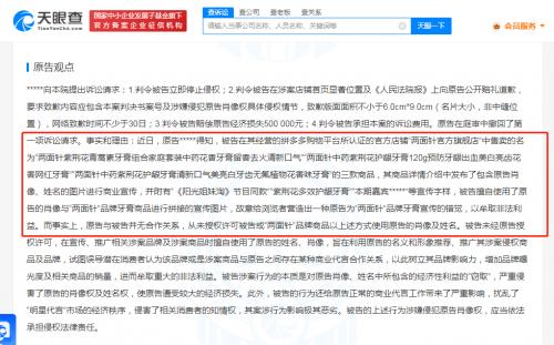 文书显示,原告毛晓彤诉称,被告在其经营网店售卖的三款商品详情介绍中发布了包含原告肖像、姓名的图片进行商业宣传,并附有“《阳光姐妹淘》节目同款”等宣传字样,故意营造出一种原告为其牙膏宣传的错觉,以牟取非法利益,上述行为涉嫌侵犯原告肖像权。被告两面针公司辩称,其使用涉案海报是基于北京场景互娱传媒科技有限公司获得授权后的合法使用。