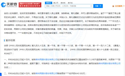 法院审理认为,两面针公司借毛晓彤个人网络热度吸引关注,并推广商品销售信息,构成对毛晓彤肖像权、姓名权的侵犯。而场景互娱公司出具的《授权及使用规范》明确,被授权方不得误导他人认为海报艺人与被授权方存在任何代言关系,因此两面针公司的抗辩理由不能成立。最终,法院判决柳州两面针股份有限公司在涉案网店刊登致歉声明,并赔偿毛晓彤经济损失4万元。