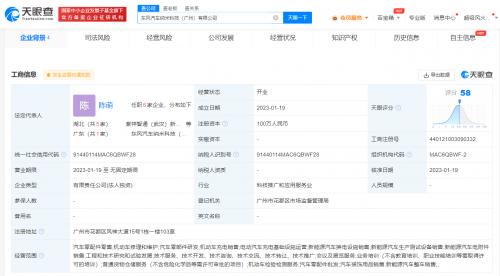 天眼查App显示,近日,东风汽车纳米科技(广州)有限公司成立,法定代表人为陈萌,注册资本100万人民币,经营范围包括汽车零配件零售、机动车修理和维护、汽车零部件研发等。股东信息显示,该公司由东创紫联(武汉)新能源科技有限公司全资持股,后者为东风汽车集团股份有限公司全资子公司。