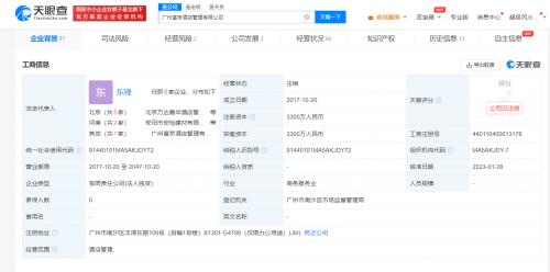 该公司成立于2017年10月,法定代表人为东锋,注册资本3300万人民币,由北京英协置业投资有限公司全资持股。据悉,2022年9月,为缓解债务压力,富力地产亏损600余万卖掉广州富京酒店管理有限公司及其附属公司北京万达嘉华酒店管理有限公司,买方为北京英协置业投资有限公司。