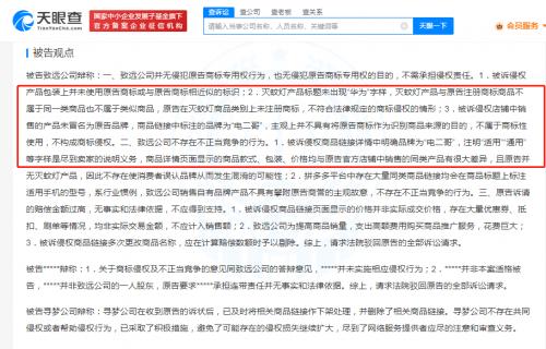 文书显示,原告华为公司诉称,被告致远公司在网店销售的灭蚊灯、耳机产品链接名称标有“华为”“Huawei”文字,并在页面图片中突出使用与原告商标近似的标识,构成商标侵权;被告还在部分商品页面使用“官方正品华为通用”等字样进行虚假宣传,构成不正当竞争;被告唐某作为致远公司的一人股东,应对承担连带责任。被告致远公司辩称,灭蚊灯产品标题未出现“华为”字样,且原告并无灭蚊灯产品,因此不存在使消费者误认品牌从而发生混淆的可能性;商品标题上标注适用手机的型号系行业惯例,不存在不正当竞争行为。被告唐某辩称,其并非致远公司的一人股东。