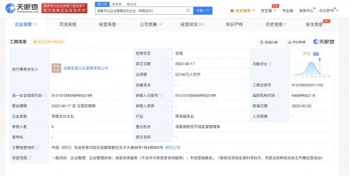 天眼查App显示,成都司元企业管理合伙企业(有限合伙)成立于2022年6月,出资额5.21亿人民币,执行事务合伙人为成都歌者企业管理有限公司,经营范围含企业管理;企业管理咨询;信息咨询服务;市场营销策划。合伙人信息显示,该企业由安吉舜佃股权投资合伙企业(有限合伙)、杭州华星创业通信技术股份有限公司、成都歌者企业管理有限公司共同合伙分别持股65.97%、3.84%、0.19%。其中,杭州华星创业通信技术股份有限公司为A股上市公司。