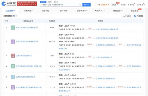 天眼查显示,三体宇宙(上海)文化发展有限公司成立于2018年12月,法定代表人唐勇。目前该公司第一大股东为上海奇歆咏岩投资有限公司,持股比例为59.15%,上海奇歆咏岩由游族网络关联公司上海游族科技集团有限公司100%持股。目前,三体宇宙公司直接对外投资4家企业,拥有10家企业的实际控制权。