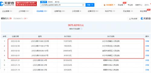 天眼查App显示,近日,步步高商业连锁股份有限公司新增多条被执行人信息,执行标的共计472万余元,执行法院包括长沙市岳麓区人民法院、长沙市雨花区人民法院等。目前,该公司存在20条被执行人信息,被执行总金额超3675万元。其中,今年以来该公司已被执行15次。