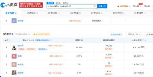 该公司成立于2015年2月,注册资本约523万人民币,经营范围含组织文化艺术交流活动;承办展览展示活动;旅游信息咨询;市场营销策划等。股东信息显示,胡海泉持有该公司4.9%股份。