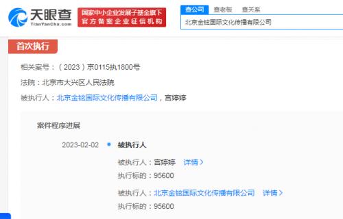 天眼查App显示,近日,北京金铉国际文化传播有限公司及其财务负责人宫婷婷新增被执行人信息,执行标的9万余元,执行法院为北京市大兴区人民法院。