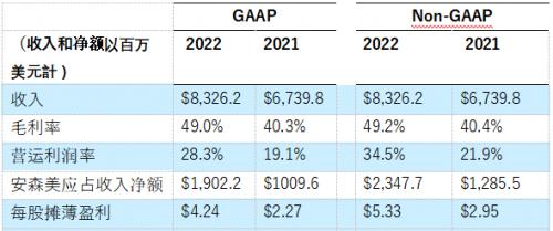 * 2022年GAAP和non-GAAP毛利率分别为49.0%和49.2%
