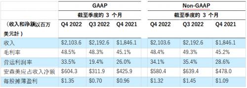 下表概列安森美预计2023年第1季度的GAAP及non-GAAP展望: