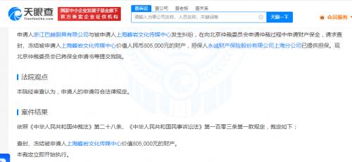 天眼查App显示,近日,浙江巴赫厨具有限公司与上海峰岩文化传媒中心仲裁程序非诉保全审查裁定书公开。