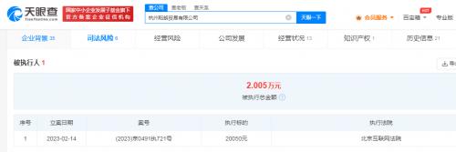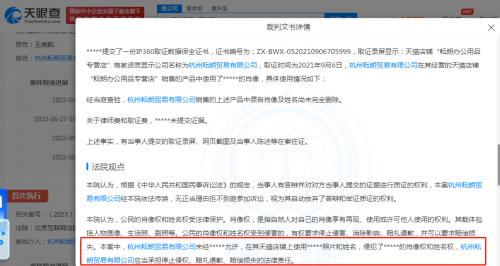 天眼查App显示,近日,杭州耘朗贸易有限公司新增一则被执行人信息,执行标的20050元,执行法院为北京互联网法院。相关文书显示,此前该公司未经王俊凯允许,在其天猫店铺上使用王俊凯照片和姓名,被判向王俊凯赔礼道歉,并赔偿王俊凯经济损失2万元和取证费50元。