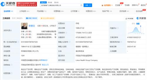 莲花健康产业集团股份有限公司成立于1998年7月(曾用名河南莲花味精股份有限公司),法定代表人为李厚文,注册资本约17.9亿人民币,经营范围包括食品生产及经营,调味品生产及销售,淀粉及淀粉制品制造、豆制品制造、肉制品及副产品加工的生产及销售,食品添加剂生产及销售等,由芜湖市莲泰投资管理中心(有限合伙)、周口城投投资有限公司等共同持股。