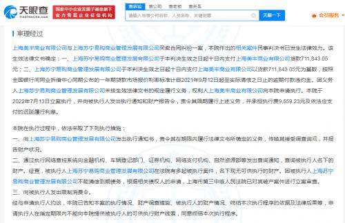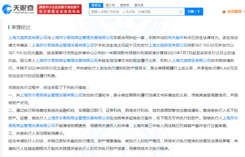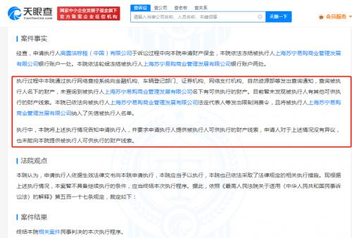 值得一提的是,上海文鹓商贸有限公司、上海美丰商业有限公司、上海福平食品销售有限公司等多家公司申请强制执行上海苏宁易购商业管理公司追讨货款,均因法院未查询到被执行人名下有可供执行的财产而终结执行。