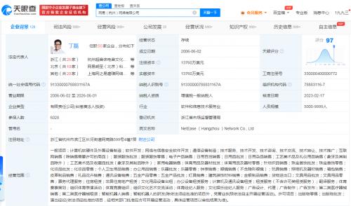 天眼查App显示,近日,网易(杭州)网络有限公司发生工商变更,经营范围新增智能机器人销售、研发等。该公司成立于2006年6月,注册资本1.376亿美元,法定代表人为丁磊,由香港网易互动娱乐有限公司全资持股。
