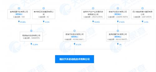 瑞庆汽车发动机技术有限公司成立于2012年2月,经营范围含生产、销售发动机整机、汽车零配件;进出口贸易;机械配件仓储服务。此前,该公司由芜湖瑞庆投资有限公司、宜宾凯翼汽车有限公司共同持股,奇瑞汽车股份有限公司通过凯翼汽车公司间接持股。