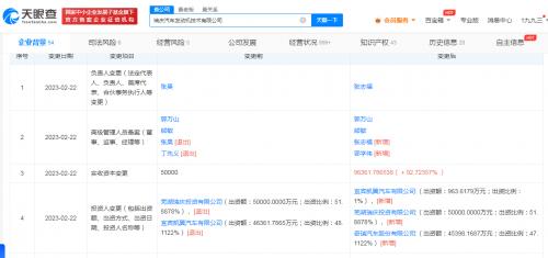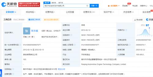天眼查App显示,近日,瑞庆汽车发动机技术有限公司发生工商变更,新增股东奇瑞汽车股份有限公司,持股约47.11%。同时,公司法定代表人由张昊变更为张志福,注册资本由5亿人民币增至约9.64亿人民币。