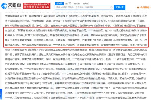 天眼查App显示,近日,东阳正午阳光影视有限公司与北京叁零壹文化传播有限公司等著作权侵权及不正当竞争纠纷一审文书公开。