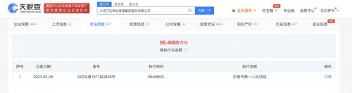 天眼查App显示,近日,大连万达商业管理集团股份有限公司及其子公司东莞东城万达广场投资有限公司新增一则被执行人信息,执行标的56万余元,执行法院为东莞市第一人民法院。