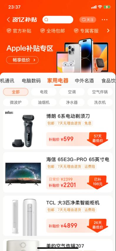 当下,人们生活水准越来越高,在家居生活中扮演着重要角色的大小家电,既成为家居环境的重要组成部分,也在消费市场中占据重要地位。3月6日京东百亿补贴全面上线,活动范围覆盖大小家电,以真金白银的补贴直接拉低价格,为消费者带来最具性价比的家电商品。为提升消费者的消费热情,助推家电市场可持续发展,京东百亿补贴购买家电产品还可支持以旧换新服务,其中空调换新至高补贴2300元、洗衣机、冰箱换新至高补贴1500元、电视以旧换新立减10%、厨卫换新至高补贴2000元等等。在京东百亿补贴“低价”基础上,以旧换新可让用户换新成本进一步降低。