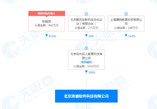 股权穿透图显示,北京渔塘软件科技有限公司由北京阳光巨人教育科技有限公司全资持股,后者股东包含上海精锐教育投资有限公司。