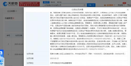 天眼查App显示,近日,大塘小鱼关联公司北京渔塘软件科技有限公司因违反《禁止传销条例》,被北京市海淀区市场监督管理局罚款150万元、没收违法所得4943万余元。