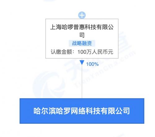 天眼查App显示,3月7日,哈尔滨哈罗网络科技有限公司成立,法定代表人褚轶群,注册资本100万人民币,经营范围含技术服务;共享自行车服务;物联网应用服务;集中式快速充电站;宠物服务(不含动物诊疗);宠物食品及用品零售等。股东信息显示,该公司由上海哈啰普惠科技有限公司全资持股。
