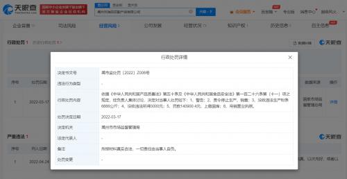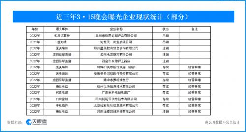 天眼查App显示,目前,近三年被曝光的60多家企业中,超4成存在行政处罚信息,处罚事由包括虚假宣传、广告违规、产品质量问题、不正当竞争等。值得一提的是,其中6家企业已注销或被吊销。如2021年因违规使用瘦肉精被曝光的河北天一肉业有限公司,因其从事危害国家安全、社会公共利益的严重违法行为被吊销执照;2022年因生产劣质红薯粉被曝光的禹州市瑞田农副产品有限公司,也已被当地监管部门吊销执照。此外,多家被315晚会曝光的企业因未按规定公示年报或通过登记的场所无法联系,被列入经营异常名录。
