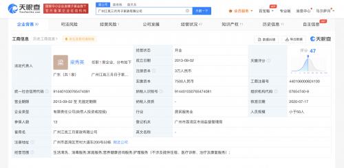 天眼查App显示,涉事广州江岚三月月子家政有限公司成立于2013年9月,法定代表人梁秀英,注册资本3万人民币,经营范围含生活清洗、消毒服务;家庭服务;营养健康咨询服务;护理服务。股东信息显示,该公司实际控制人为王逸轩,持股比例为95%。