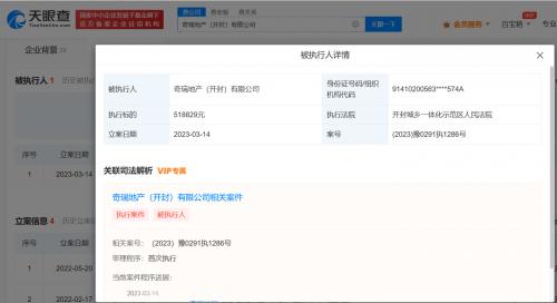 天眼查App显示,近日,奇瑞地产(开封)有限公司新增一则被执行人信息,执行标的51万余元,执行法院为开封城乡一体化示范区人民法院。