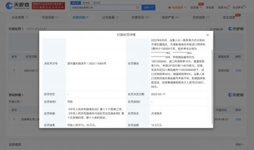 天眼查App显示,近日,好丽友食品有限公司因进口货物商品编号申报不实,影响国家税款征收,被天津海关罚款12.25万元。