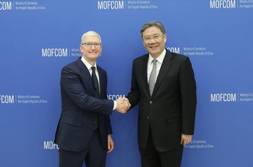 商务部部长王文涛27日会见苹果公司首席执行官库克。王文涛介绍了中国式现代化的主要特征和内涵,强调中国坚定不移推进高水平开放,稳步推动规则、规制、管理、标准等制度型开放,愿为包括苹果公司在内的外资企业提供良好的环境和服务。双方就苹果在华发展、稳定产业链供应链等议题进行了交流。
